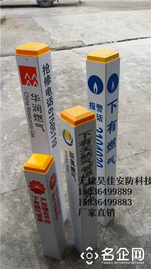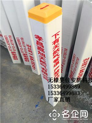 玻璃钢标志桩:经高温压制而成。抗冲击,耐磨损,耐高温,耐腐蚀,可以抗水、汽油、酒精、电解盐、醋酸、盐酸、钠钾化合物、尿、沥青,适合各种酸碱土壤。使用寿命长达30年。内容采用丝网印刷技术,警示效果好,不需要维护。重量轻,便于运输安装。无回收价值,自然防盗。