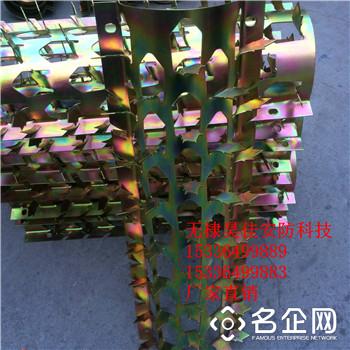 1、以往的防盜刺采用焊接成型工艺,我公司采用冲压成型的新工艺来代替复杂的焊接成型,节约人工成本,价格低于市场焊接产品。