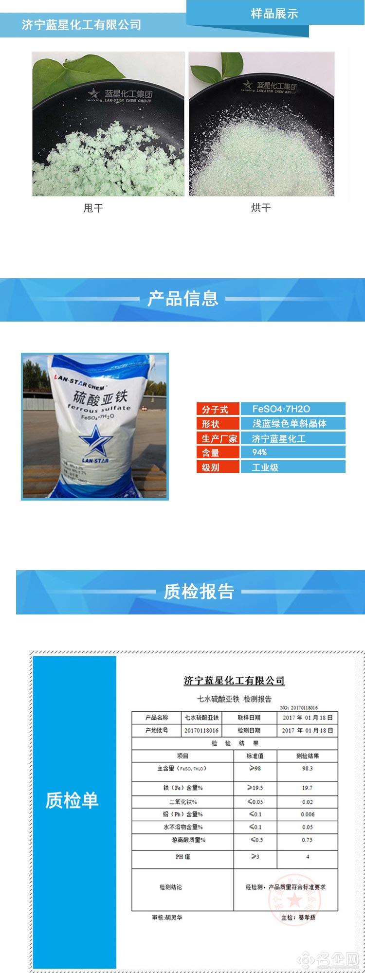 山东硫酸亚铁厂家工业级96%水处理绿矾批发硫酸亚铁