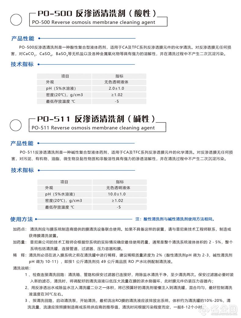 普尼奥 RO膜除垢剂纯净水设备滤芯饮水机疏通剂除水垢剂反渗透清洗剂厂家