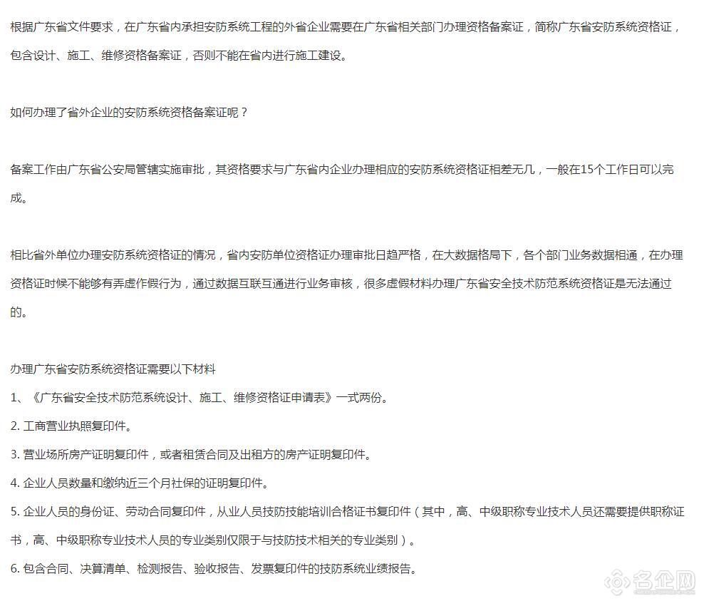 广东省安全技术防范系统设计、施工、维修资格备案证 省外系统资质备案的申办条件和程序