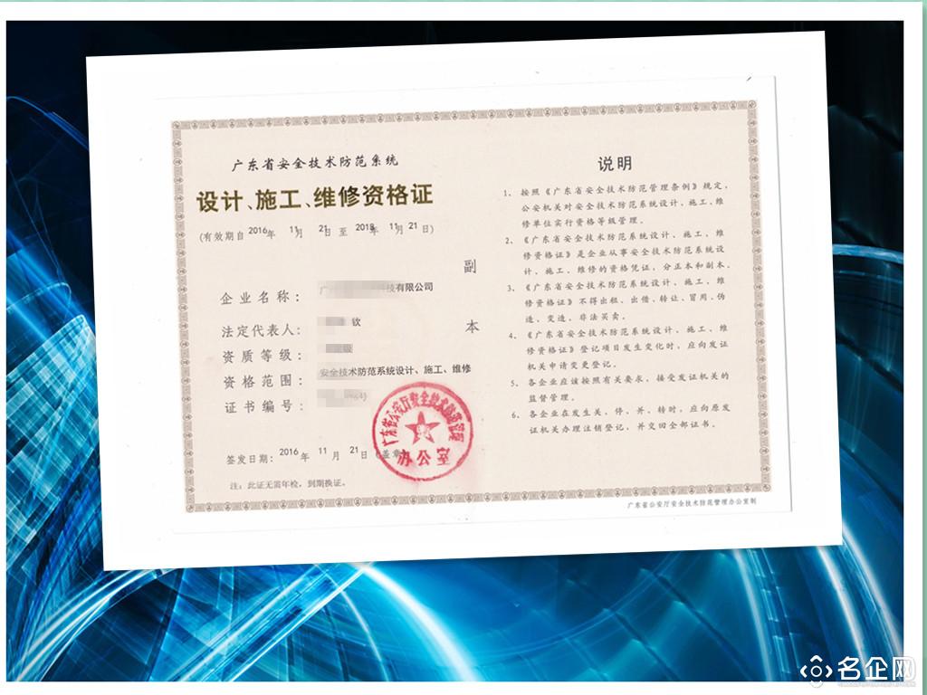 广东省安全技术防范设计与施工维修资格证(又称安防证或技防证),具有***的人才库,及从业十年经验的团队,并具有相关服务渠道,实行前期条件完善免费咨询及辅导,让企业快速达到认证条件,顺利通过认证,成功后付费,并可开具***低扣服务票,