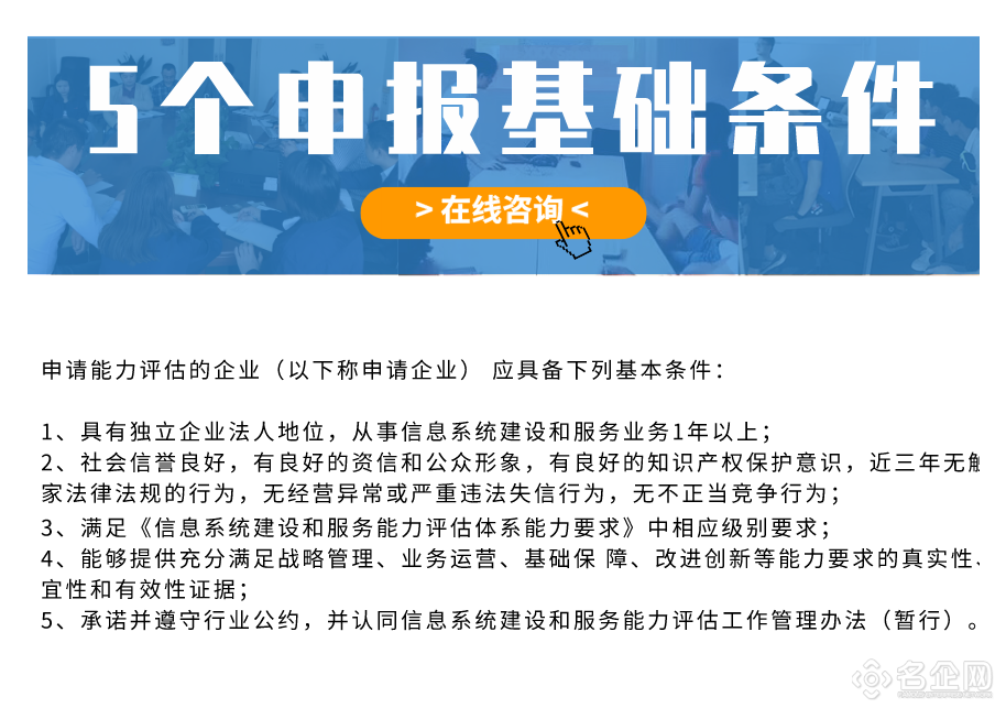 信息系统集成建设和能力评估己在2019年己试审17家,2020年己正式启动,有需要信息系统集成建设和服务能力评估CS1的企业,可随时联系咨询,我们司己正式复工,疫情期间办理可节约社费用,如有计划办的企业可咨询我们,v--x:133--4285--2518