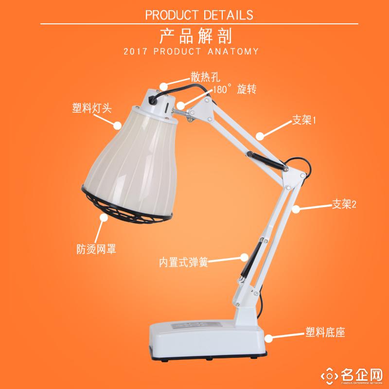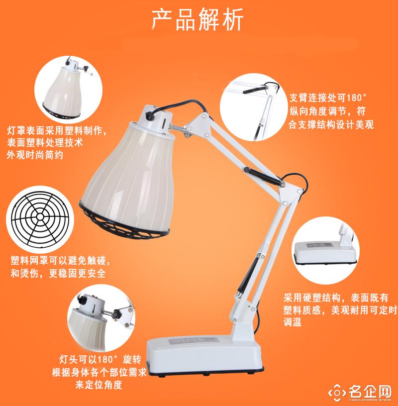 红外线理疗灯采用远红外辐射片,通电后辐射片迅速产生热量,并辐射出可达人体较深部位的远波段红外线,可使局部血管扩张,增强血液循环,